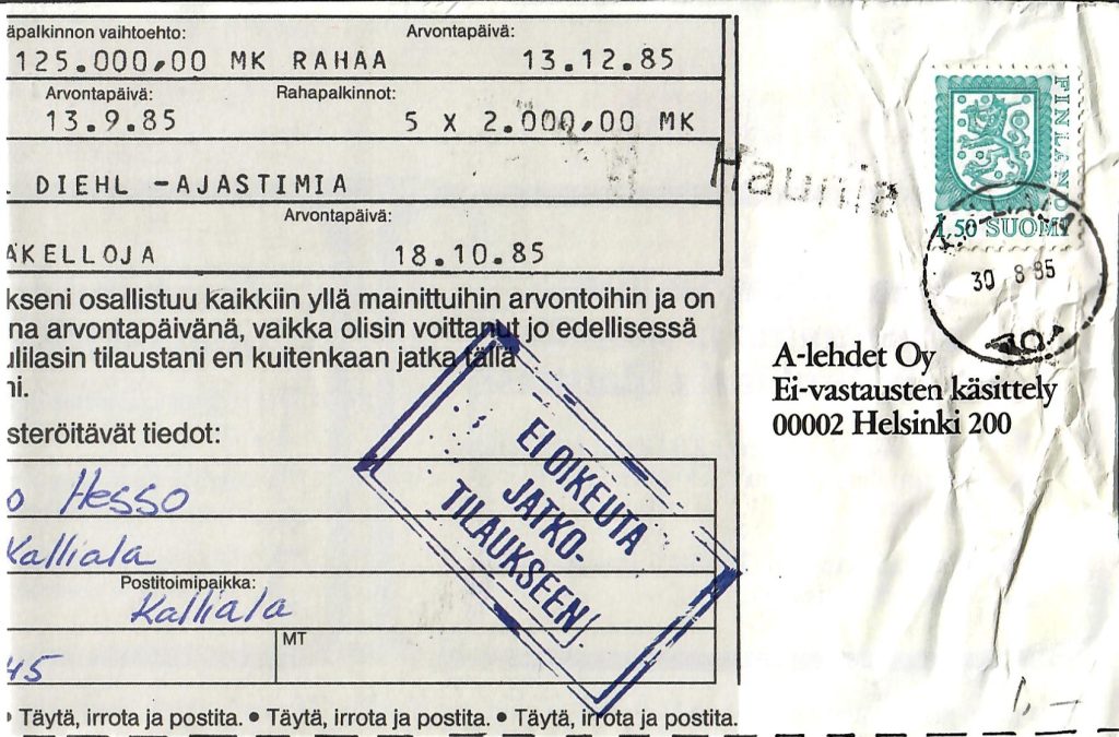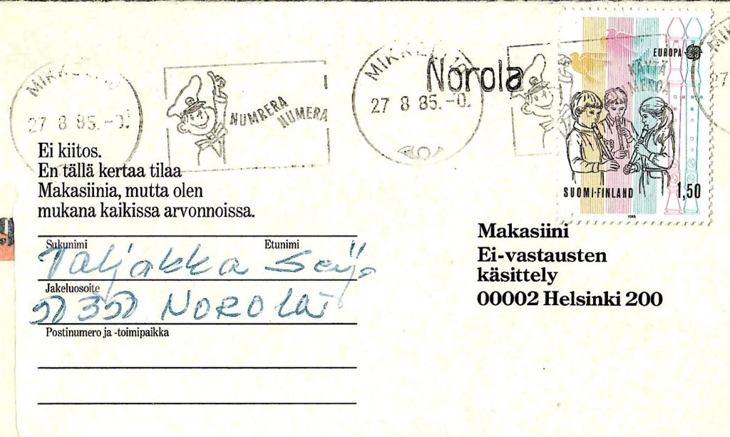 - Postipysäkkileimojen (rivileimojen) viimeiset käytöt. Ajoittunevat jonnekin 1980-luvulle, julkaistua tietoa niukasti saatavilla